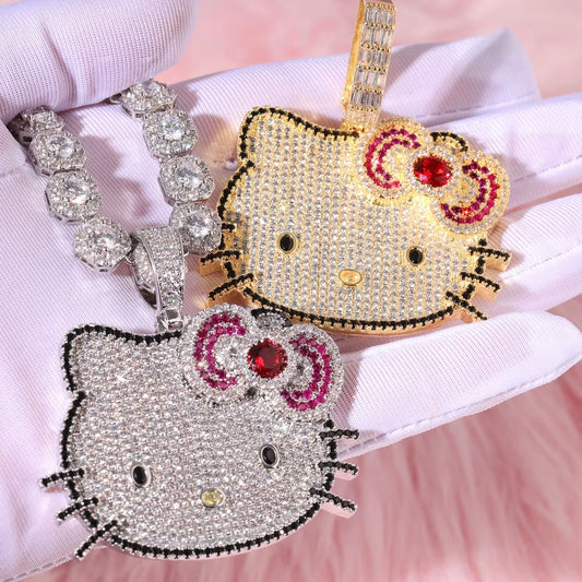 Kawaii Blinged Out Kitty Cat Silver Or Gold CZ Pendant, Hiphop Jewelry, USA Shipping
