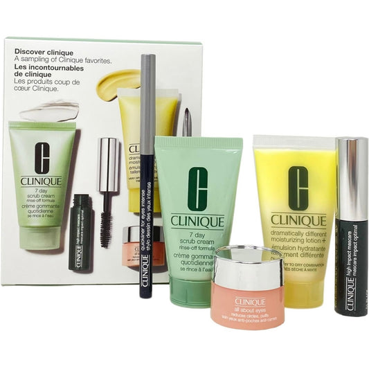 Clinique (5)-teiliges Discovery-Geschenkset mit kostenloser passender Kosmetiktasche | Alle Artikel in Originalgröße