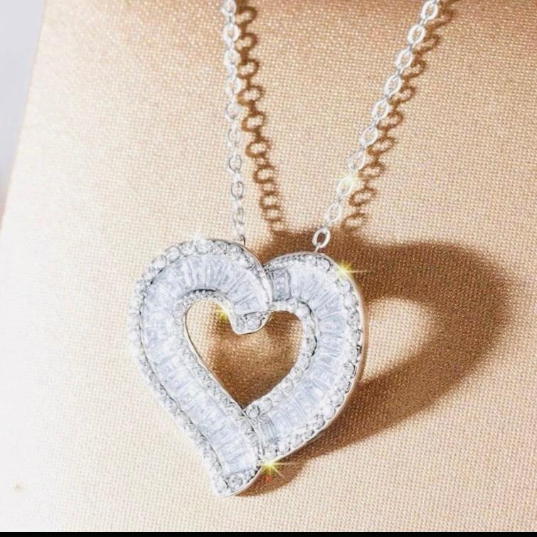 Der Herzanhänger ist mit brillanten, makellosen, klaren Diamantschliffkristallen, Zirkonia im Prinzessschliff und atemberaubenden Saphiren gestaltet, wobei jeder Edelstein 1,00 ctw perfekt in Herzform eingelegt und gestapelt ist. Bei jeder Drehung verströmt er das erstaunlichste, auffälligste Funkeln. Das gesamte Stück wurde für Gelegenheiten geschaffen, bei denen man verwöhnt und blenden kann! Ein romantischer, verträumter und fachmännisch gefertigter Herzanhänger, der widerspiegelt, wie stark Ihre Liebe ist.