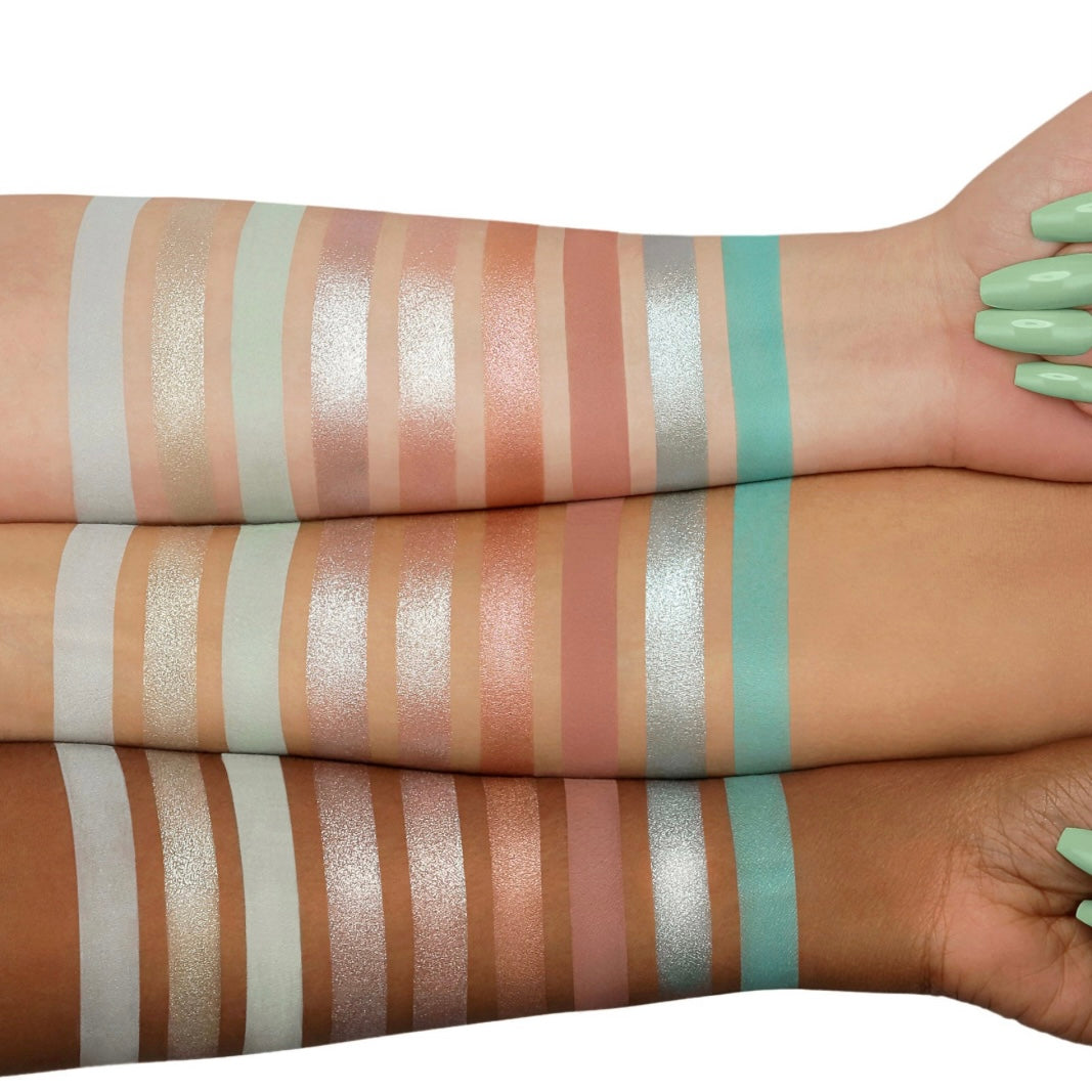 Ein wahrgewordener Traum: Diese Palette vereint ein Spektrum aus neun pigmentierten Pudern – vier leuchtende Duo-Chrom-Schimmer und fünf cremige Matttöne – in den Farbtönen von kühlem Braun bis Mintgrün und Wüstensand.