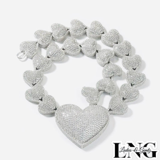 Sapphire Micro Pave AAAAA Cubic Zirconia Heart Pendant Necklace in Vermeil 14k White Gold By LadiesNGentz Boutique