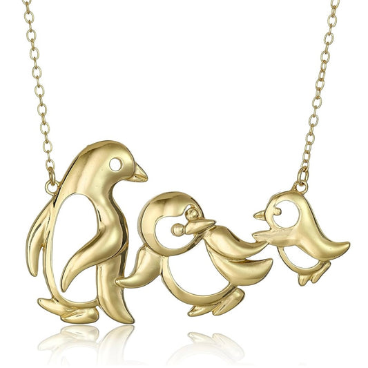 Triple Penguin Charm Necklace In Rose Gold Or 10K Gold, Hypoallergenic & Waterproof