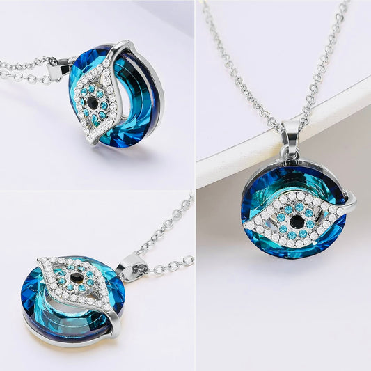 Luxury Indigo Blue Evil Eye Crystal Pendant Necklace – Sterling Silver Protection Jewelry