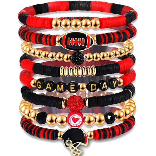 Game Day 8 piece Stackable Friendship FootBall CZ Beaded Charm Bracelet Set In Various Colors & Styles