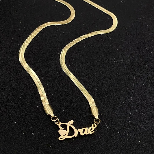 Customizable 14k Vermeil Gold Herringbone Necklace with Personalized Name Pendant W/ Free Shipping & Gift Box