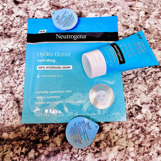Neutrogena Hydro Boost Hyaluronic Hydrating Mask & Cleanser Gel Set Plus 2 Belief Aqua Bomb Pods