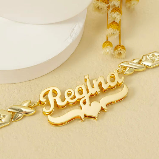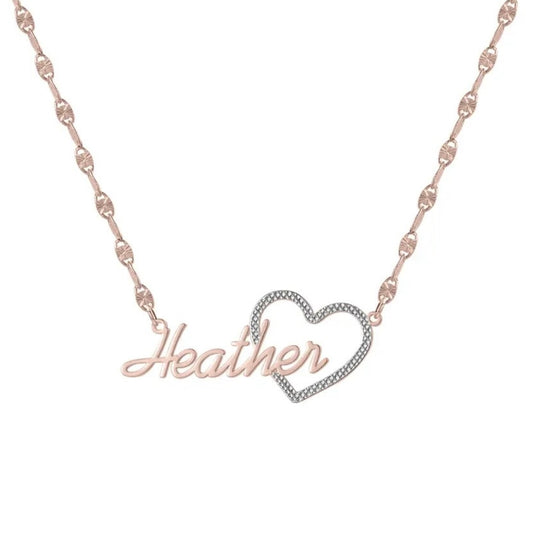 Colgante con nombre personalizado en forma de corazón de dos tonos en oro vermeil de 10 k y plata de ley con collar a juego
