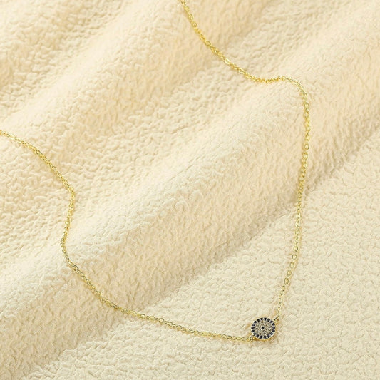 Delicado collar con colgante de diamantes y zafiro azul de ojo malvado de oro de 14 k