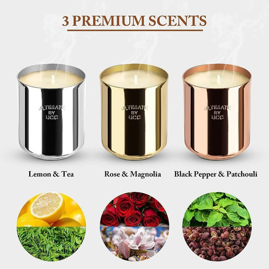 3-Piece Scented Coconut Soy Candle Set - Lemon, Magnolia & Patchouli | 4oz Eco-Friendly Aromatherapy