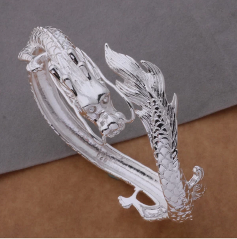 Brazalete de plata de ley, dragón plateado