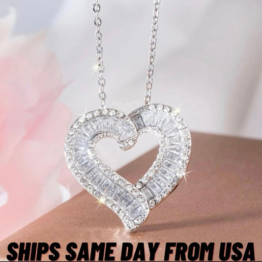 Impecable colgante en forma de corazón de zafiro cristalino de talla princesa, plata, oro blanco de 14 k, 20 pulgadas. Collar, Regalo de joyería para ella, Novia, Pascua
