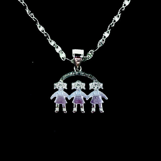 Tri-Color 3 Sister Silver, Gold, Rose Gold Pendant On 17inch NecklacePrecio habitual $26.99 USDPrecio habitualPrecio unitario por-