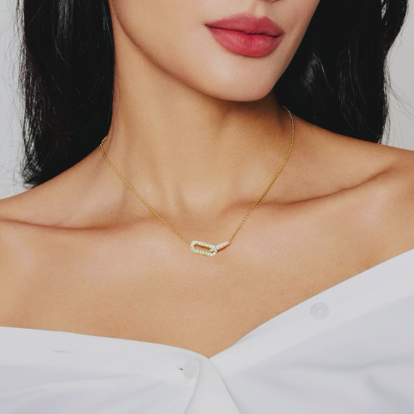 Dainty 14k Vermeil Gold Diamond Encrusted Double Link Minimalist Pendant Necklace