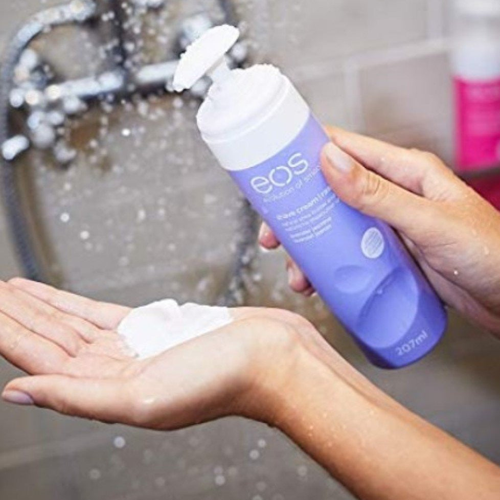 - Rich, non-foaming eos lavender scented shaving cream is packed with natural shea butter, vitamins C & E for beautiful skin.