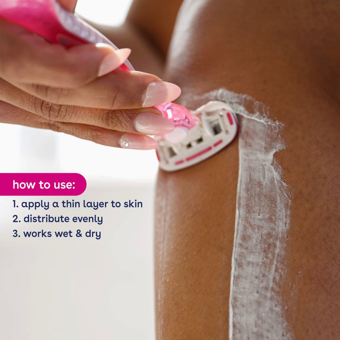- With 24 hours of skin-softening moisture, eos is so moisturizing you can shave wet or dry. Plus, it’s enriched with aloe and oat extract to help prevent nicks and razor bumps.