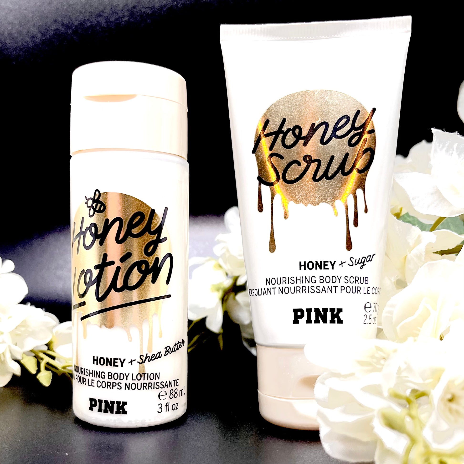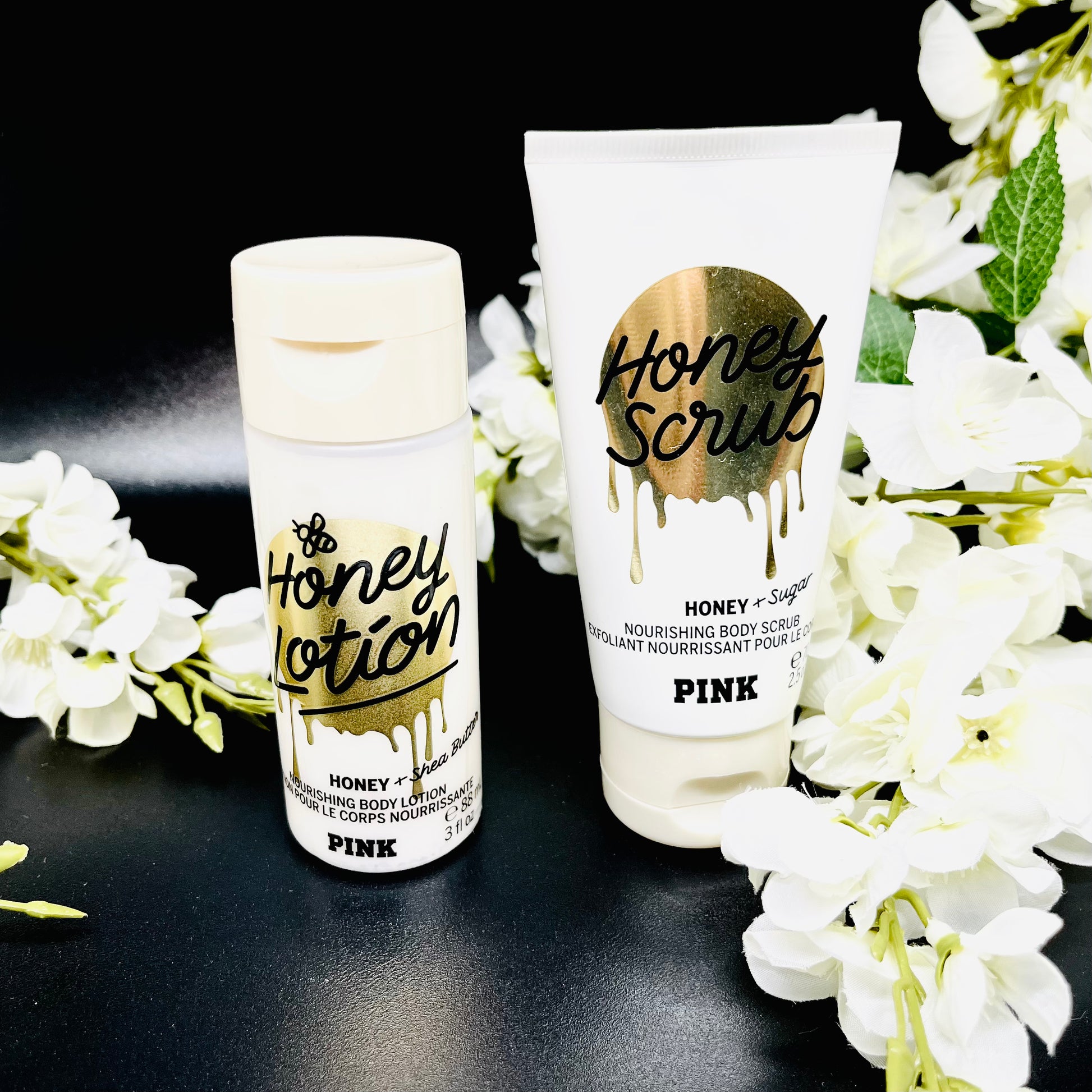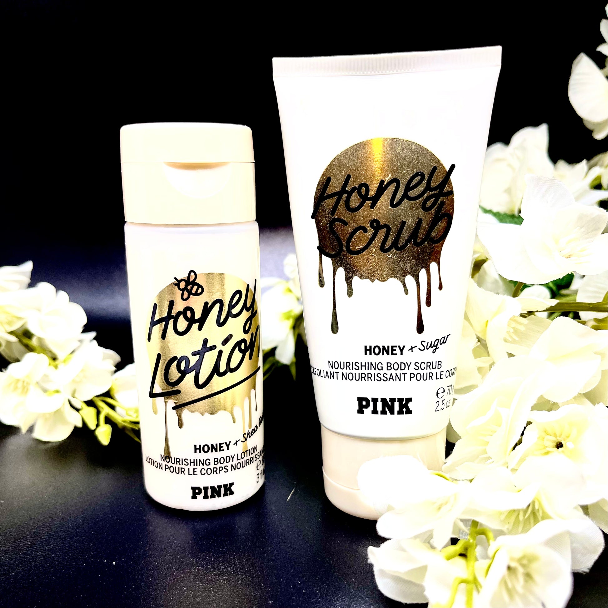 Pink By Victoria secret Nourishing Honey Body Scrub and matching nourishing Honey body Lotion.